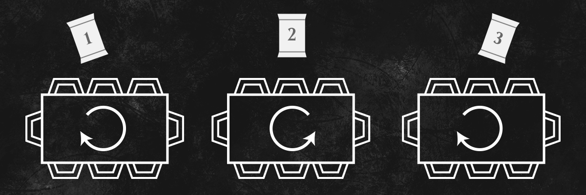 Bij een draft krijgt iedere speler 3 boosters. De spelers gaan aan tafel zitten, en openen allemaal de eerste booster. Iedere speler pakt een kaart uit zijn booster en geeft de rest door aan de linker speler. Hier pakt iedereen weer een kaart uit. Dit gaat door tot alle kaarten uit de boosters gekozen zijn. De tweede booster gaat hetzelfde, maar dan rechtsom. De laatste booster gaat weer linksom. Met de kaarten die je op deze manier gekregen hebt bouw je je deck.