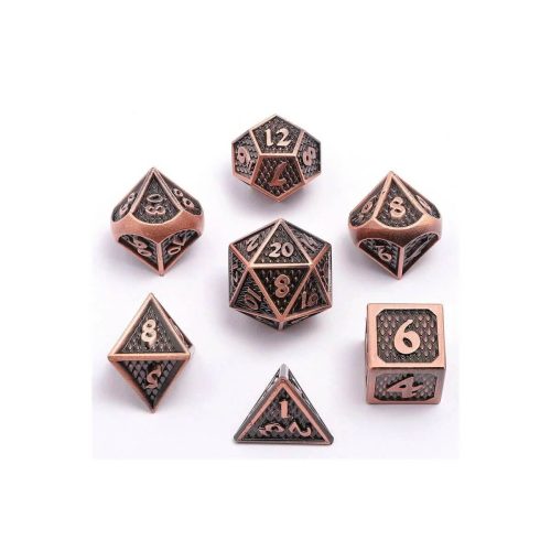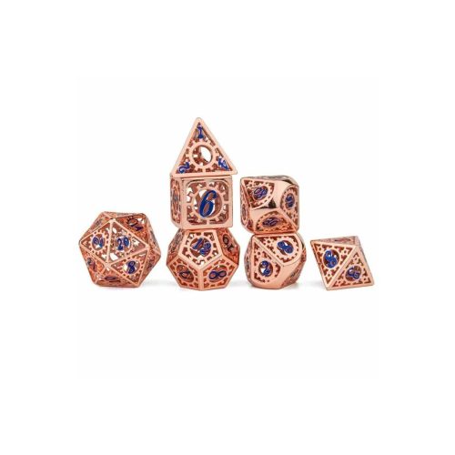 Copper & Blue Hollow Gear – Metal Dice – 7 stuks