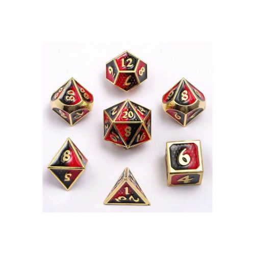 Gold w/Red & Black Behemoth – Mini Metal Dice – 7 stuks