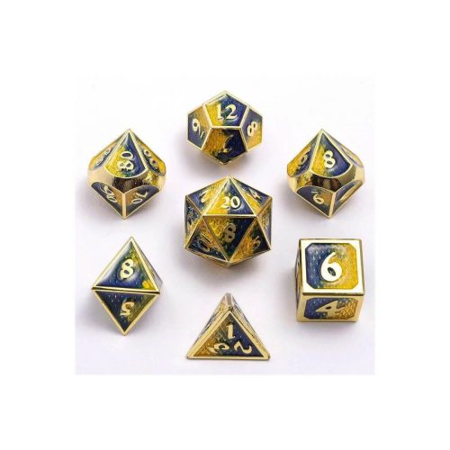Gold w/Yellow & Blue Behemoth – Mini Metal Dice – 7 stuks
