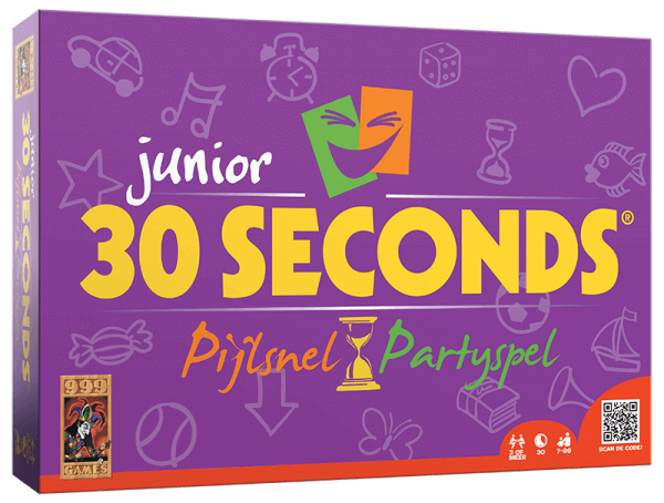 Het pijlsnelle partyspel is er nu ook voor kinderen. De spelregels zijn gelijk aan die van het bekende basisspel. Eén speler omschrijft één voor één de 5 begrippen op een kaart, zijn teamgenoten moeten deze raden. Het team heeft daar een halve minuut de tijd voor. 30 Seconds Junior bevat 480 kaarten met liefst 2400 relatief eenvoudige begrippen. Op elke kaart staan een aantal vlot te omschrijven en een paar uitdagende woorden. Zo ervaren kinderen veel succesmomenten, maar wordt het educatieve element niet vergeten. Pluspunten: