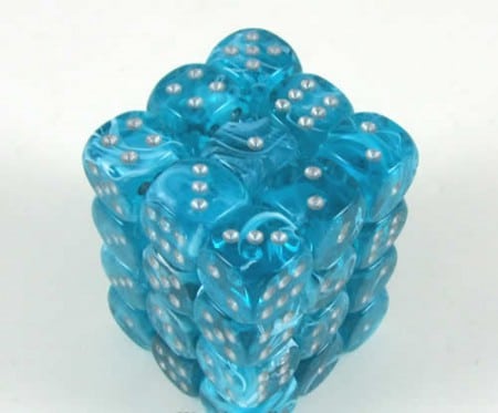 Cirrus Aqua/silver D6 12mm (36 stuks) CHX-27865 – Dobbelstenen set met 36 x 12 mm dobbelstenen.