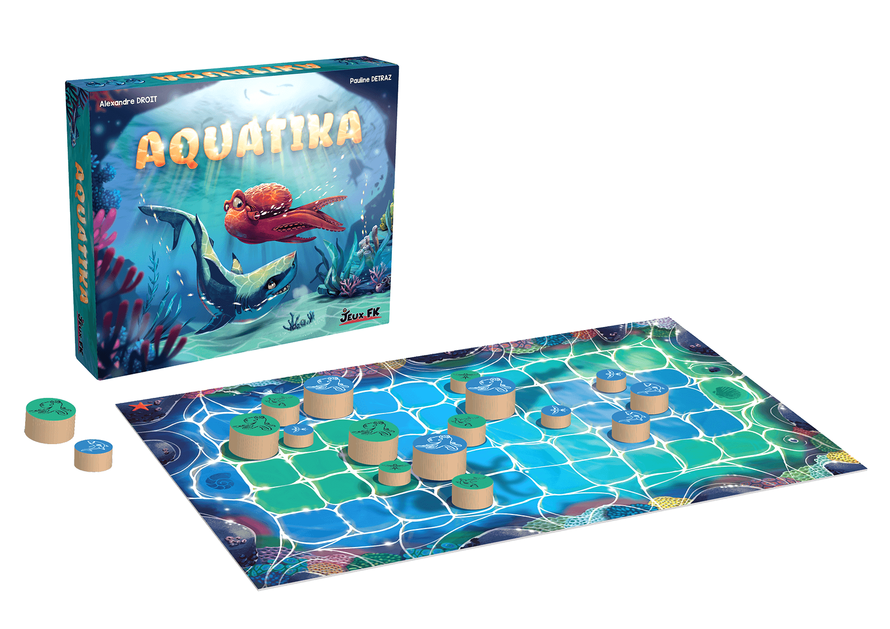 In Aquatika heeft elke speler negen stukken: drie octopussen, drie haaien en drie vliegende vissen. Op het eerste gezicht is het spel heel eenvoudig, maar elke speler kiest zijn stukken naar eigen inzicht op zijn 9 vakjes, wat het spel al kan veranderen. Aanvallend? Verdedigend? Ergens ertussenin? De keuze is aan jou.