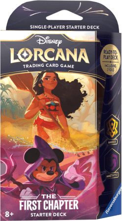 Wil je zo snel mogelijk beginnen met Disney Lorcana spelen? Dan is alles wat je nodig hebt een deck van 60 kaarten. Een starter deck is dan het ideale begin want dit is een kant-en-klaar deck dat zo uit het doosje te spelen is. Een starter deck komt inclusief een aantal game fiches om te gebruiken tijdens het spelen en een boekje met uitleg. Daarnaast bevat een starter deck een boosterpack van Archazia’s Island om nieuwe kaarten aan je verzameling toe te voegen of je deck een upgrade te geven.