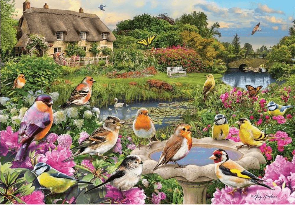 Onze gevederde vrienden zingen in zachte harmonie. En geen wonder dat dit in zo’n prachtige omgeving gebeurt, allemaal met dank aan Greg Giordano in deze puzzel van 250 XL-stukken.