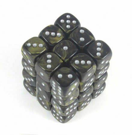 Leaf Black Gold/silver D6 12mm (36 stuks) CHX-27818 – Dobbelstenen set met 36 x 12 mm dobbelstenen.