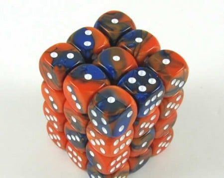 Blue-Orange/White Gemini D6 12mm. 36 zes-zijdige dobbelstenen voor verschillende spellen.