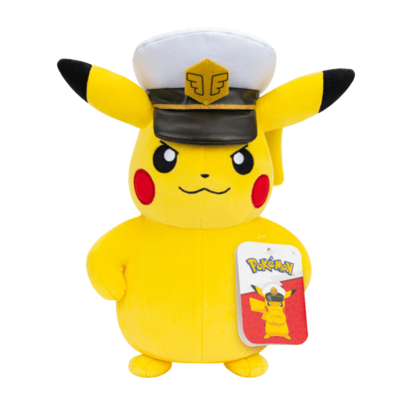 Een schattige en knuffelbare pluchen knuffel van Pikachu in een stoere kapiteinspet. Met zijn kenmerkende gele vacht, schattige glimlach en een stijlvolle kapiteinspet is deze 20 cm grote knuffel perfect voor Pokémon-fans en verzamelaars.