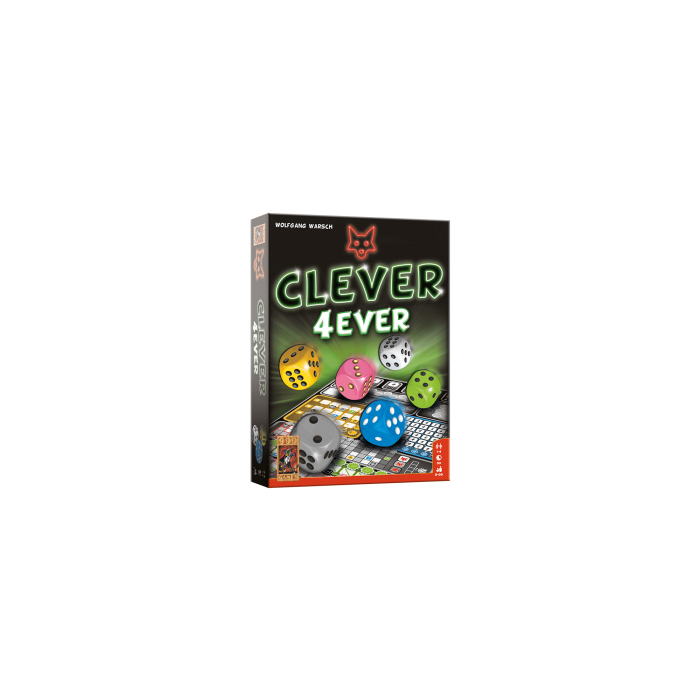 Clever is terug! In deze vierde editie van dit populaire dobbelspel ga je weer zoveel mogelijk punten scoren. Naast 5 gloednieuwe categorieën heb je nu ook de nieuwe actie “zilver oppoetsen”, waarmee je een dobbelsteen op het dienblad tijdelijk kunt verhogen of verlagen. Clever 4ever is een must voor fans, maar ook een prima introductie voor iedereen die kennis met Clever wil maken.