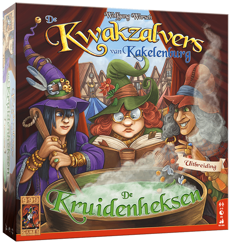 Uitbreiding op het populaire bagbuildinggspel “De Kwakzalvers van Kakelenburg”. Deze bevat onder meer speelmateriaal voor een vijfde speler en nieuwe ingrediëntenboeken.