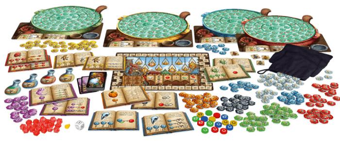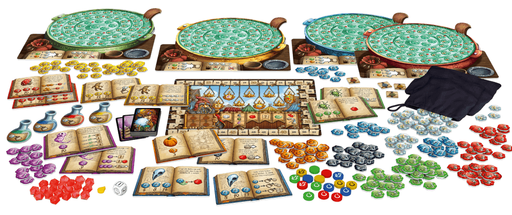 Maak je drankje en lever die in voor punten. Maar pas op: knalerwten laten het ontploffen! Een deckbuilding game met het ”Push your luck” mechanisme.