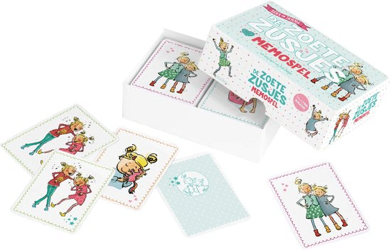 Een spelletje memory verveelt nooit! Vooral niet als je het vrolijke Zoete Zusjes memospel mag spelen met de bekende illustraties van Iris Boter. Zoek de vrolijke plaatjes van Saar en Janna bij elkaar, en winnen maar! Dit memoryspel met afbeeldingen van de Zoete Zusjes is geschikt voor kinderen vanaf 4 jaar. De vijftig stevige kaartjes (25 sets) zitten in een mooie bewaardoos en zijn bedacht door Hanneke de Zoete.