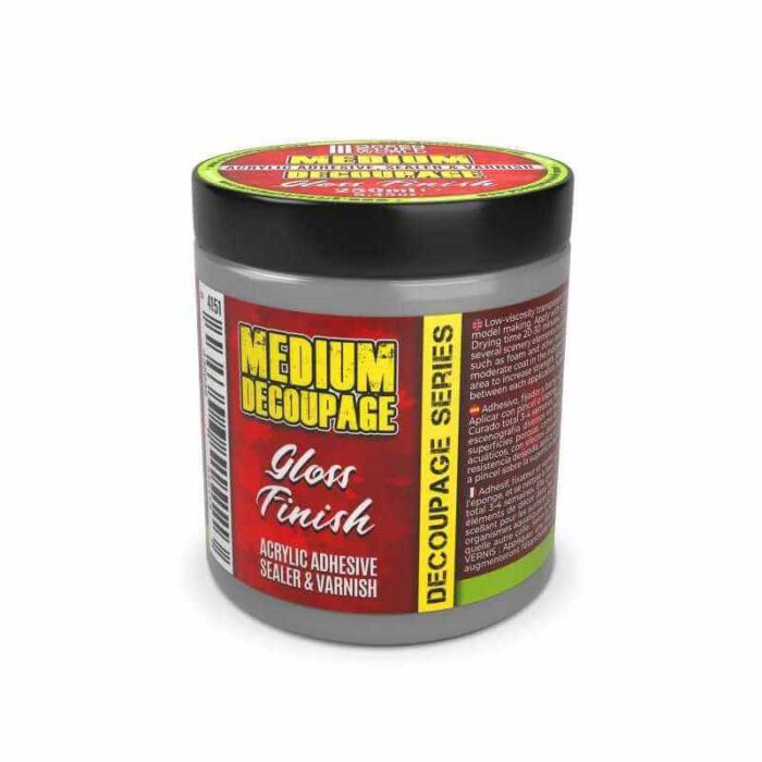 Green Stuff World Decoupage Gloss (250ml) is de ideale glanzende lijm en vernis voor miniaturen en diorama’s. Plakt én beschermt!