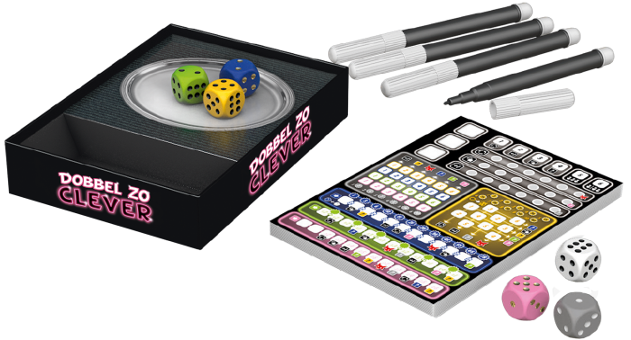 Variant van het tactische dobbelspel Clever. Dobbel en vul steeds één van je geworpen resultaten in. Elke categorie levert op een andere manier punten op. Niet gekozen dobbelstenen gaan echter naar de andere spelers. Razend spannend tot het einde!