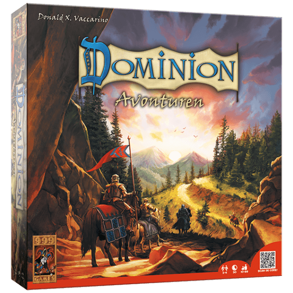 Dominion Avonturen van 999 Games is een grote uitbreiding op Dominion die Reservekaarten, Gebeurteniskaarten en 30 nieuwe Koninkrijkkaarten introduceert voor 2 tot 4 spelers.
