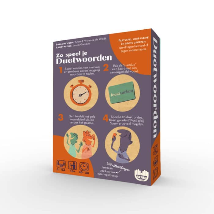 Duetwoorden is een uniek en hilarisch partyspel van het merk Benki Games dat perfect past bij de sfeer van De Spellenhoorn. In dit spel draait alles om samenwerking zonder dat er direct overleg mogelijk is.