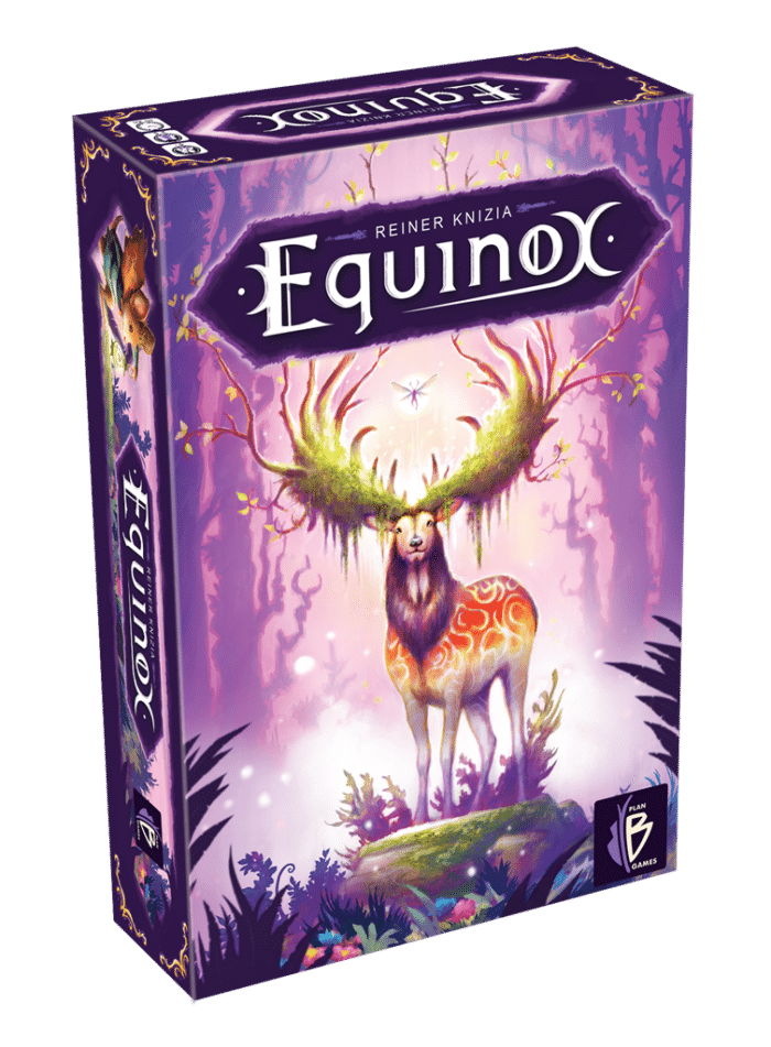 Het belooft een betoverend avontuur te worden met het sluwe biedspel Equinox! Verkrijgbaar in twee verschillende boxen, met dezelfde inhoud. Dit is de paarse variant.