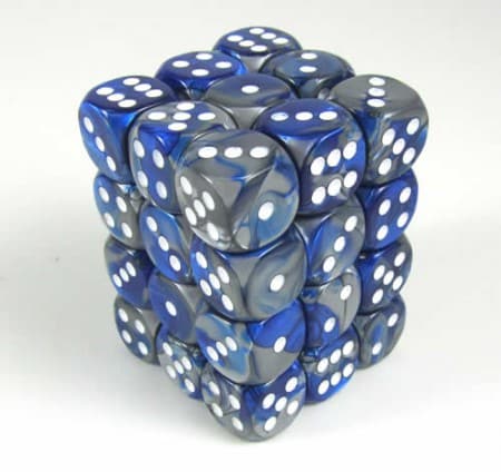 Gemini Blue-Steel/White D6 12mm. 36 zes-zijdige dobbelstenen voor verschillende spellen.