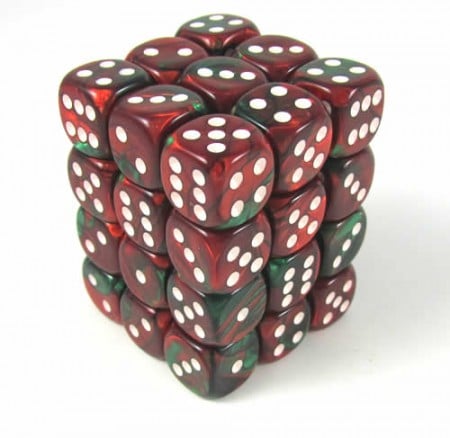 Gemini Green-Red/white D6 12mm (36 stuks) CHX-26831 – Dobbelstenen set met 36 x 12 mm dobbelstenen.