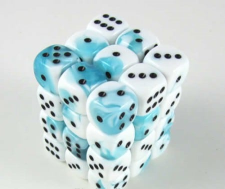 Gemini White-Teal/black D6 12mm (36 stuks)
