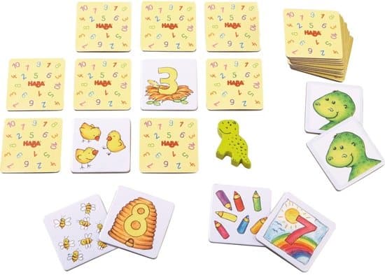 Wie kan de getallendino helpen bij het tellen? Bij ieder getal moet de bijpassende hoeveelheid worden gevonden en omgekeerd.
