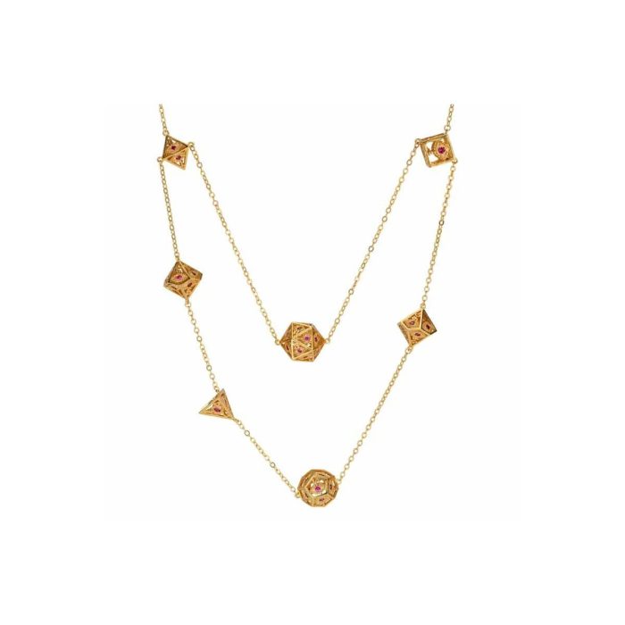 Gold w/Ruby Red Gems – Dragon’s Eye 7-die Necklace