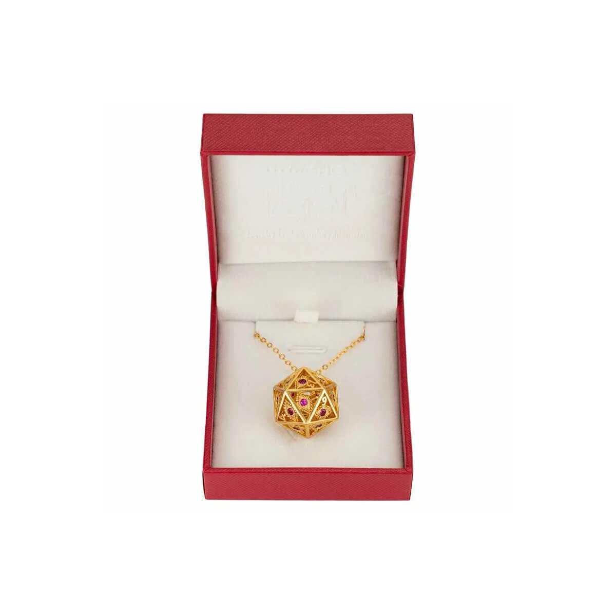 Gold w/Ruby Red Gems – Dragon’s Eye D20 Necklace