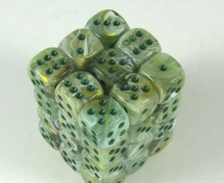 Green w/Dark Green Marble D6 12mm (36 stuks)