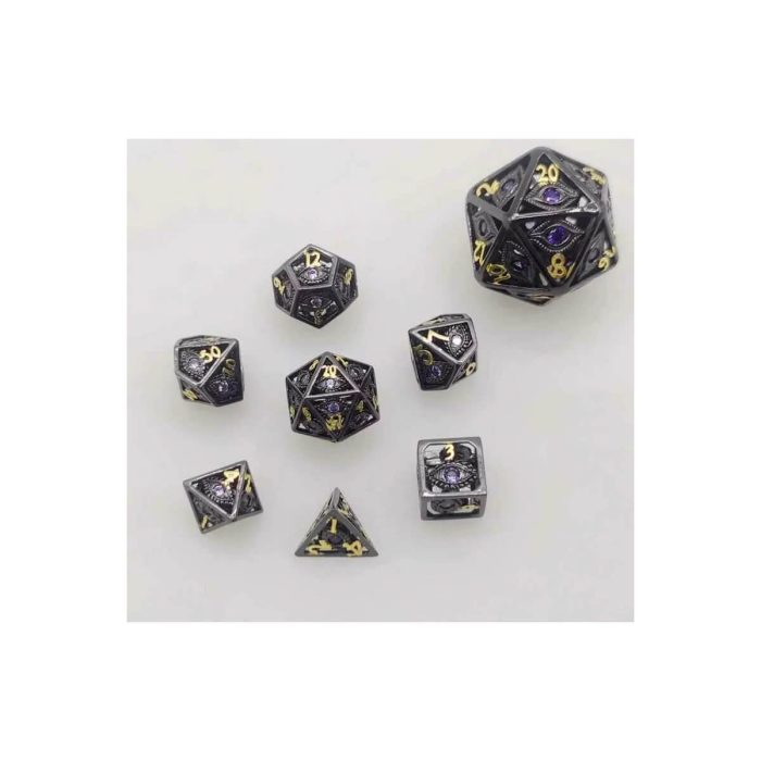Gunmetal Dragon’s Eye w/Purple Gems – Hollow Metal Mini Dice set – 7 stuks