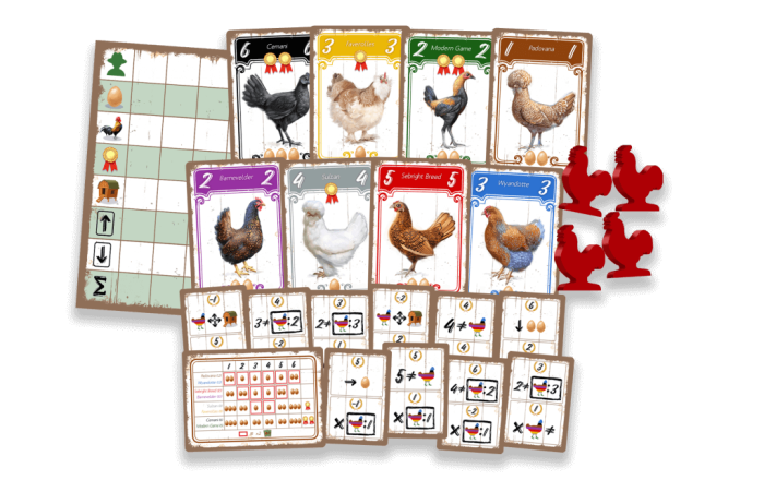 Dit spel, met prachtige artwork, gaat helemaal over kippen! Wie is de beste kippenfokker?