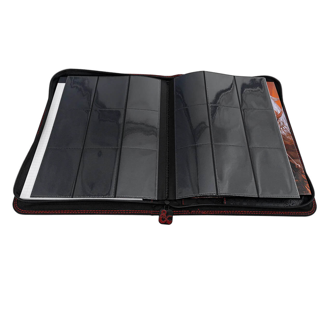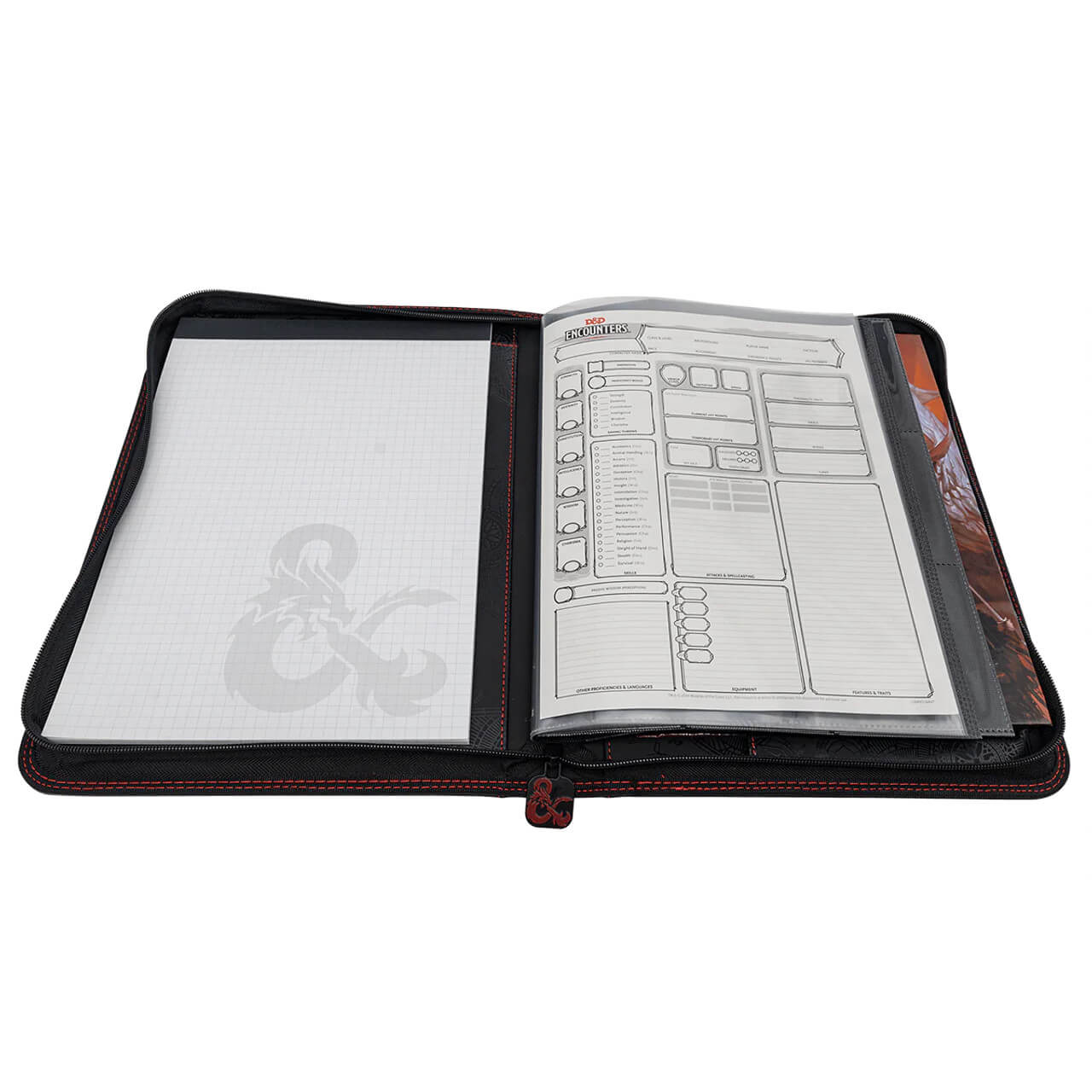 • Store maps and notes in the front pocket, and a D&D sourcebook in the back for easy access