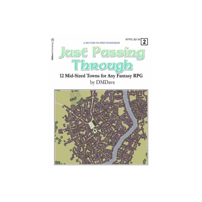 Embark on an unforgettable journey with Just Passing Through: 12 Mid-Sized Towns for Any Fantasy RPG, the essential guide for Game Masters seeking to create immersive and engaging experiences for their players. This system-agnostic collection offers a diverse range of unique, ready-to-use towns, each meticulously crafted to fit seamlessly into any fantasy setting. Inside, you’ll find 12 distinct town descriptions complete with maps, detailed information on population, leadership, commerce, organizations, and a colorful cast of NPCs.
