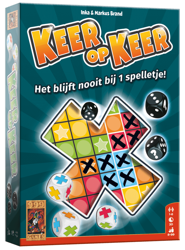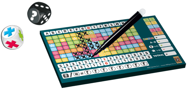 Dobbel- en puzzelspel voor het hele gezin. Kies steeds 2 dobbelstenen en kruis de bijbehorende vakjes op je speelveld aan. Het vullen van kolommen en gebieden van dezelfde kleur leveren een bonus op. Wie behaalt de meeste punten?