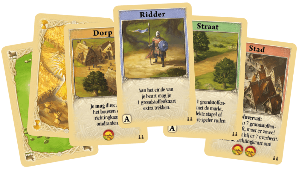 Vlot kaartspel voor 2-4 spelers, gebaseerd op De Kolonisten van Catan. Bouw straten, dorpen, steden en stadsuitbreidingen, en zet ridders in. Ruil met elkaar of met de markt en de gedekte stapel. Maar pas op: straten en ridders kunnen zomaar verloren gaan als je ze niet goed beschermd.