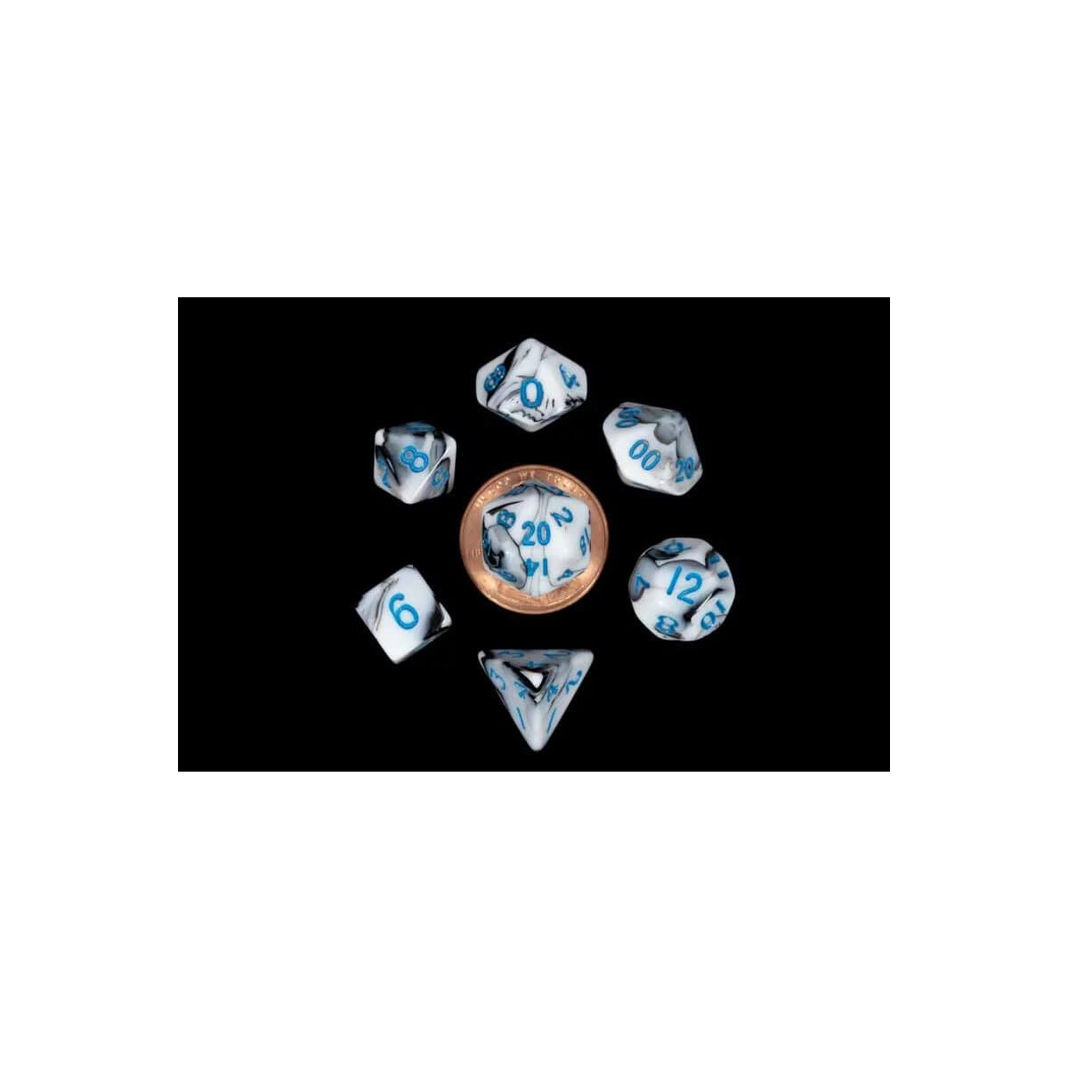 Marble w/ Blue Numbers – Mini Dice set – 7 stuks