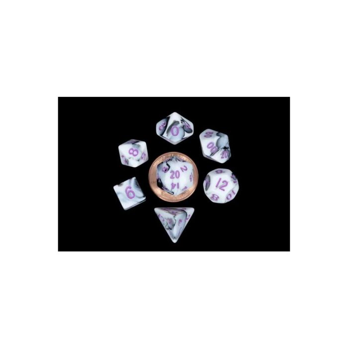 Perfect for gaming anywhere, anytime! At 10mm, these mini dice sets easily fit in your pocket so you can bring your dice everywhere you go. Each polyhedral set comes with 7 dice (d4, d6, d8, d10, d10 (00-90), d12, and d20).