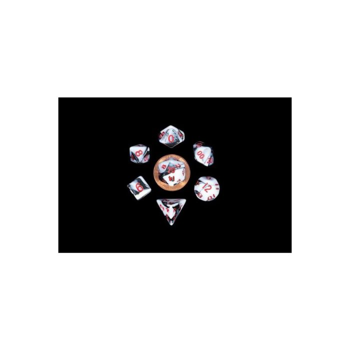 Perfect for gaming anywhere, anytime! At 10mm, these mini dice sets easily fit in your pocket so you can bring your dice everywhere you go. Each polyhedral set comes with 7 dice (d4, d6, d8, d10, d10 (00-90), d12, and d20).