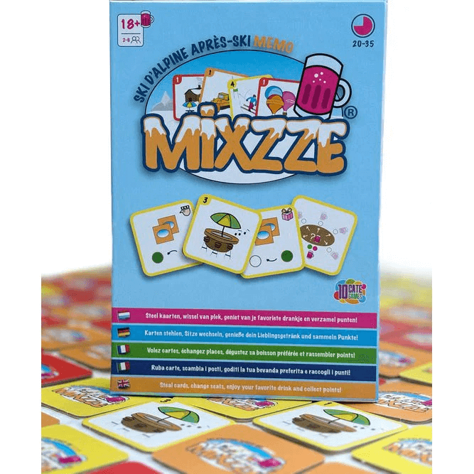Het artwork bestaat uit winterse afbeeldingen van skihutten, bobsleeën, snowboarders, skiën, ijsklimmen tot aan de stamtafel waar je gezellig geniet van je favoriete drankje. De memo kaarten in combinatie met de opdrachten van de actie- en après-ski kaarten maken Mixzze spannend, lachwekkend en leuk tot het eind voor alle spelers.