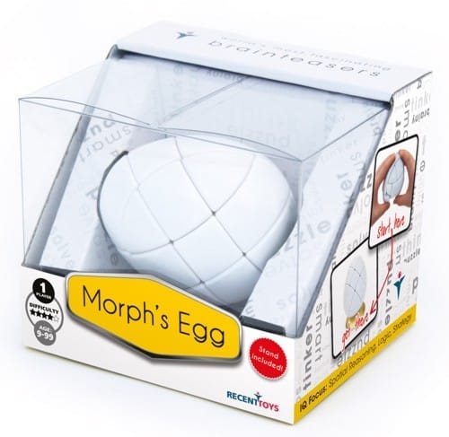 Morph’s Egg – Ruimtelijk Redeneren, net als een kubus, echter nu heeft de puzzel een ei-vorm. Door de diagonale assen, een nieuwe uitdaging om deze puzzel terug te krijgen in zijn oorspronkelijke eivorm. Moeilijkheidsgraad: 4 van de 5 sterren.