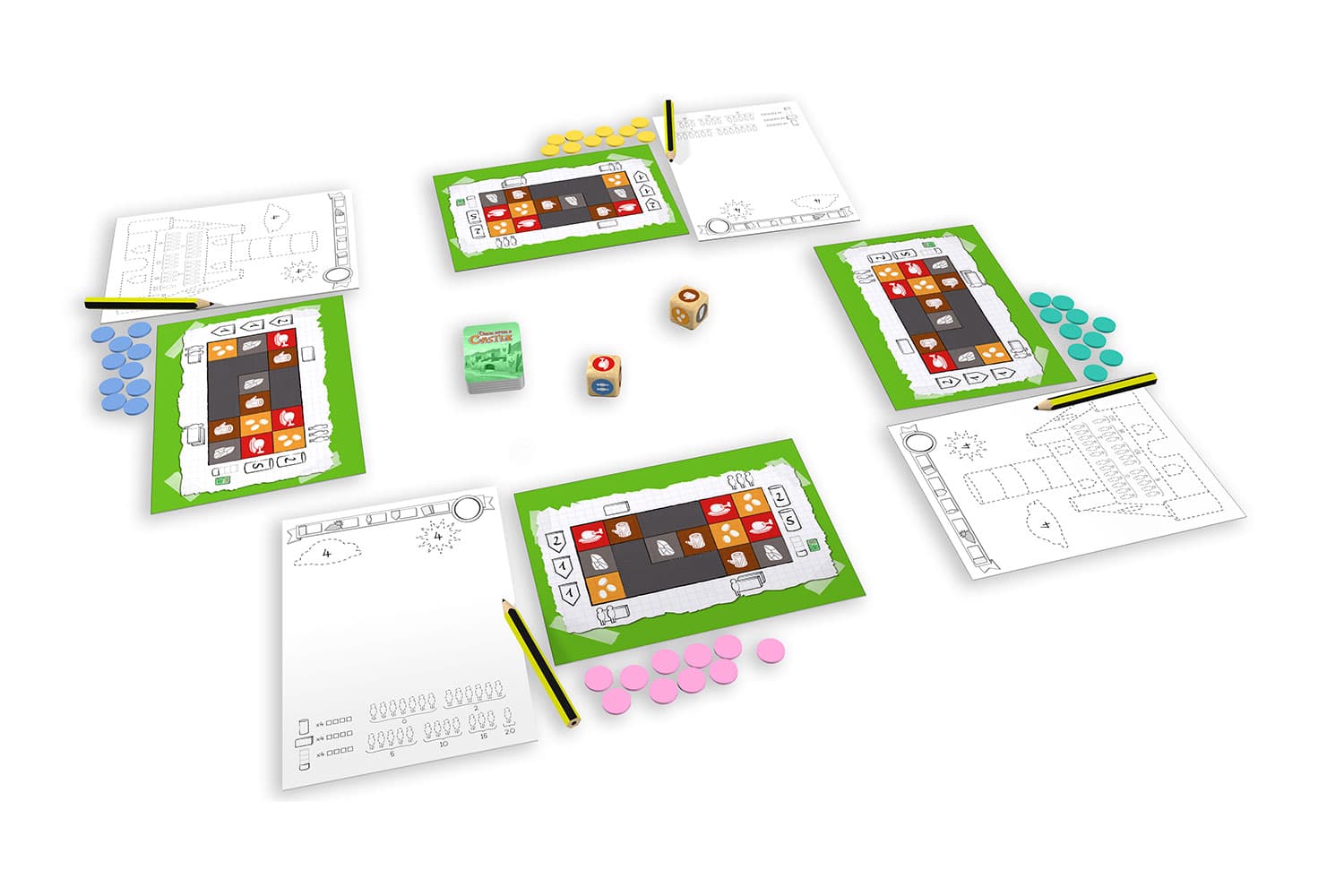 Bouw en teken je droomkasteel in Once Upon a Castle van Blue Orange Games, een strategisch en gezinsvriendelijk spel (2-4 spelers) vol slimme actiekeuzes.