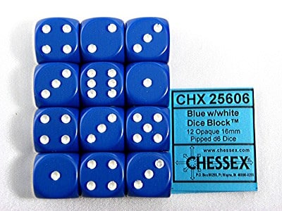 Opaque Blue/white D6 16mm (12 stuks)