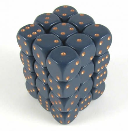 Opaque Dusty Blue/gold D6 12mm (36 stuks)