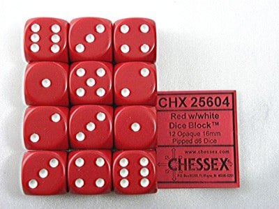 Koop of bestel Opaque Red/white D6 16mm (12 stuks) bij De Spellenhoorn.