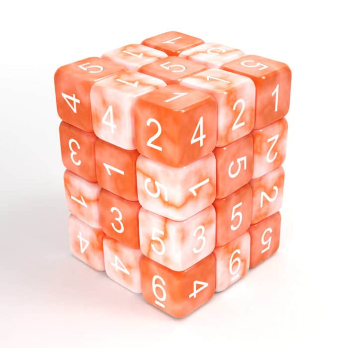 Orange White Marble – 12mm D6 Dice – 36 stuks