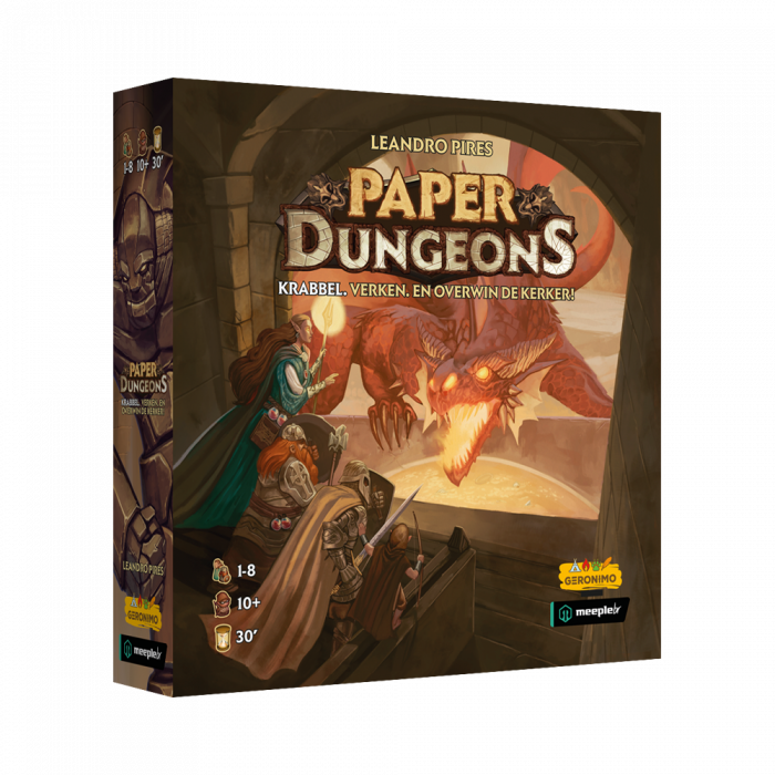 In deze originele roll & write leid je een groep helden op avontuur doorheen een kerker. Je zult kamers verkennen, magische voorwerpen gebruiken, schatten verzamelen en monsters verslaan voor roem. Je kunt de dobbelstenen op verschillende manieren inzetten en er zijn meerdere pistes naar de overwinning. Toch kan er aan het einde van de 8e ronde maar één heldengroep winnen en met alle eer gaan lopen in de taveerne.