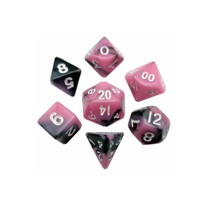 Perfect for gaming anywhere, anytime! At 10mm, these mini dice sets easily fit in your pocket so you can bring your dice everywhere you go. Each polyhedral set comes with 7 dice (d4, d6, d8, d10, d10 (00-90), d12, and d20).