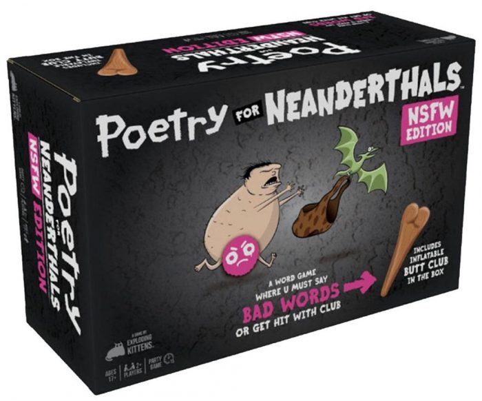 Poetry for Neanderthals: NSFW Edition is an adult party game similar to Taboo® where players earn points by getting their teammates to guess words and phrases. The catch is that they are only allowed to use single-syllable words. Enjoy getting grandma to guess phrases like “nudist beach,” “mile high club” or “banana hammock,” but be careful. If you use any words with more than one syllable, the other team gets to spank you with the 2-foot inflatable Spank Stick. But maybe that’s not such a bad thing?