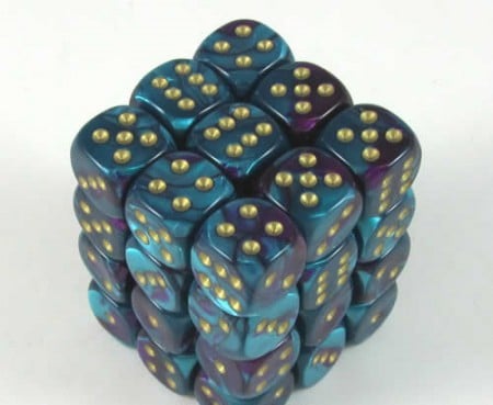 Gemini Purple-Teal/Gold D6 12mm (36 stuks) CHX-26849 – Dobbelsteen set met 36 x 12 mm dobbelstenen.