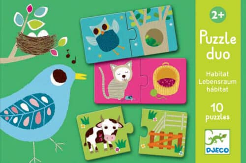 Een eerste combinatiepuzzel Mama en baby. De duo-puzzel Dierenbaby’s is een educatieve puzzel waarbij het kind het dier met zijn kleintjes moet combineren. De eenvoudige en ludieke duo-trio-puzzels zijn spelletjes waarbij ideeën gecombineerd worden, voor kinderen vanaf 2 jaar. In elke doos een combinatie om deze goed te begrijpen en te beheersen. De dikke stukken kunnen door de kinderhandjes gemakkelijk vast gepakt worden en de opbergdozen kunnen overal mee naartoe!