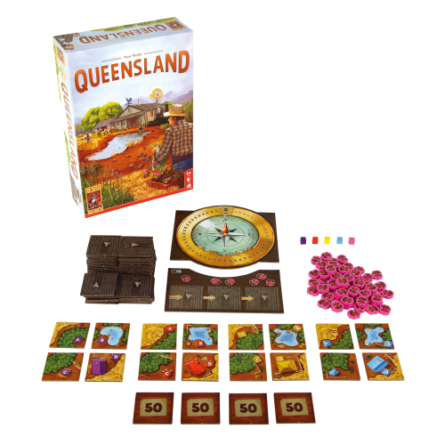 Queensland is een lichtgewicht tactisch tegelspel. Door tegels te leggen bouw je je eigen boerderij op, waar je punten mee verzamelt. Zo krijg je punten voor het aantal tegels met vogelverschrikkers of koeien dat je weet te verzamelen of voor de grootste suikerplantage die je met de tegels weet te vormen.